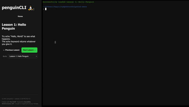 Learn Linux, all in your browser using a real terminal, 100% Free Forever. No account needed.